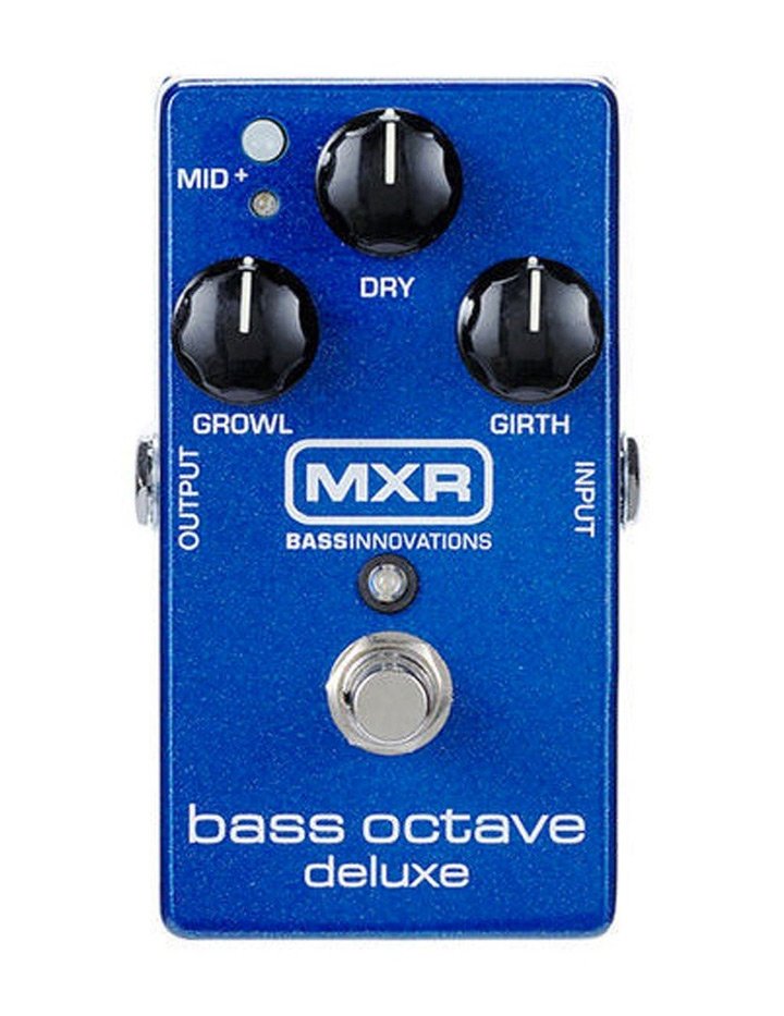 The M288 Bass Octave Deluxe is a dual-voice octave pedal that offers analog tone, true bypass, and a variety of tonal options. MXR’s 18 volt Constant Headroom Technology™ provides high headroom and superior tracking. Use the Dry knob to mix in your direct signal, and hit the Mid+ switch to add up to +14dB of internally adjustable mid frequencies (400Hz or 850Hz). Finally, mix in two separately controlled octave voices—Growl (for throaty tone) and Girth (for deep tone).