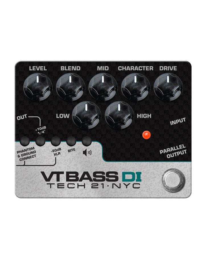 The VT Bass DI incorporates a Blend control to adjust the ratio of direct signal and SansAmp circuitry, and a Bite switch to engage a presence boost and a subsonic filter.